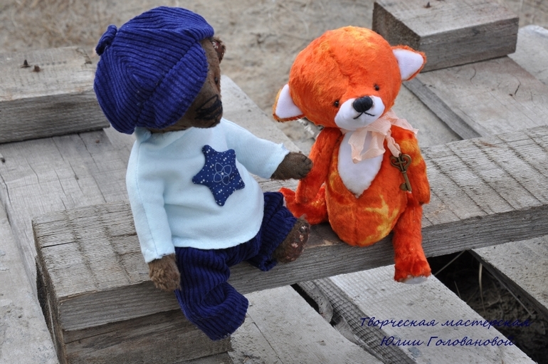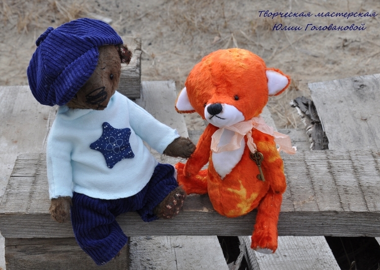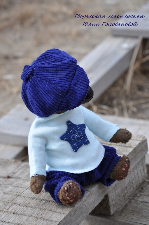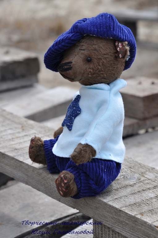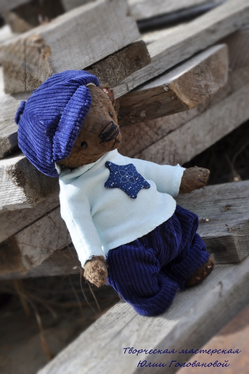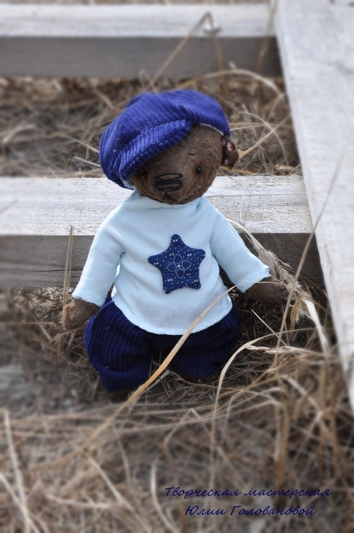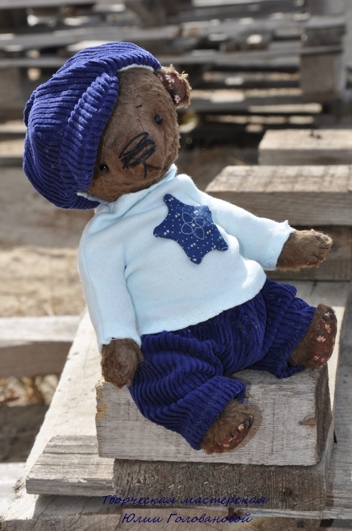 Тедди: мишки и их друзья.У нас сегодня первый летний день! А ночью я дошила нового мишку и мы вязли его с собой на утреннюю прогулку. Спешу представить. Гоша. Мишка тедди сшит из вискозы, плотно набит опилками и гранулятом. Упитанный и тяжеленький толстячок. Голова покачивается и мишка будто оживает. Шплинтовые соединения. Гоша сшит полностью вручную, в единственном экземпляре. Одет в вельветовые брючки, водолазку, на голове кепи. Вся одежда съёмная.