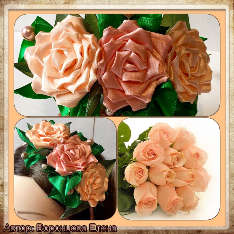 Розы сделаны из атласной ленты 5см.