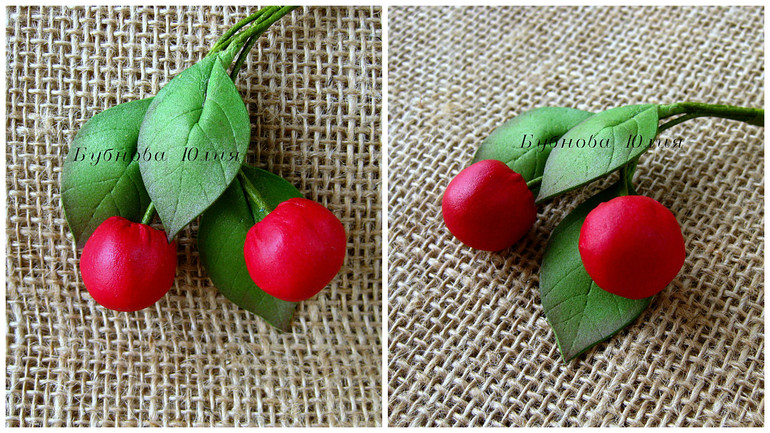 Веточка с вишенками выполнена из фоамирана полностью вручную.