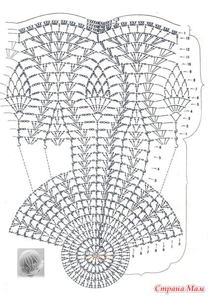 Вязание крючком (РАБОТЫ И СХЕМЫ)Вот по этой схеме?Что-то у меня не получается начать.Сильно много прибавлений в начале и донышко сильно волной идет.