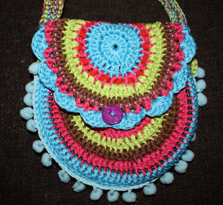 И вот сама сумочка. Она такая яркая, сочная. Вязка очень плотная и сумочка держит форму. Все очень мило и аккуратно сделано.