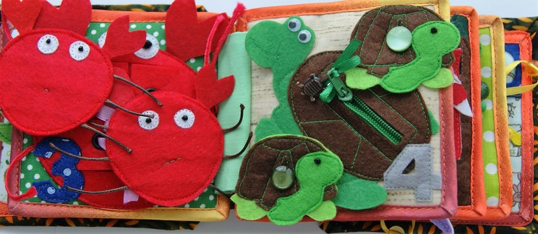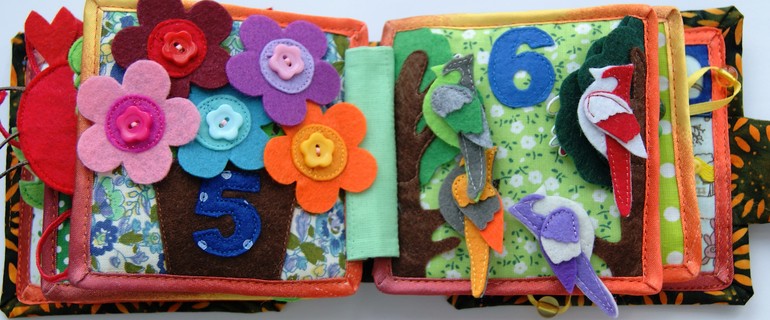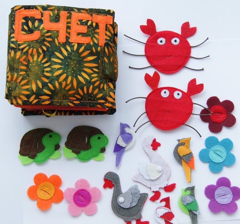 Развивающие игрушкиПокажу на ваш суд очередную книжку для сынульки - шестую по счету))) 10*10 см, пошита из хлопка и корейского фетра, который не сыпется и не крошится. В книжке 4 листа, 5 разворотов, 15 съемных элементов. Под cut 8 фото