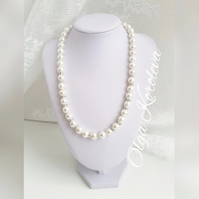Любимое объемное колье из культивированного жемчуга и кахолонга. Увесистое, торжественное и для особо случая, делала под браслет и серьги из этой же серии, чтобы был комплект. 60 сантиметров камней, руки потом несколько дней приятно побаливали.