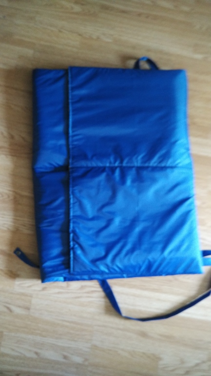 Подстилочка 1.5 х 1.5м. Собирается в сумку с 2 мя карманами и еще один накладной потайной на молнии для денег и ключей. В карманы влезает вода, салфетки, полотенца, сменные вещи и книжечка для меня))