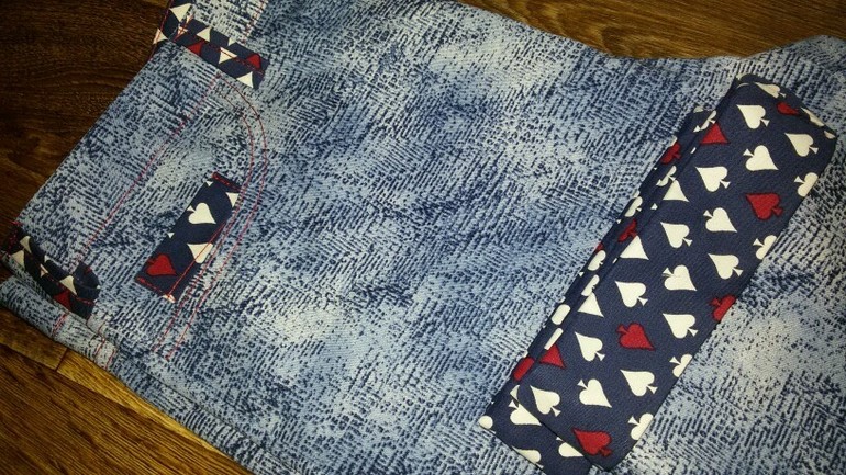 Второй комплект:это джинсы тонкие и отделаны плотным хлопком в карточный принт, кроила по своим любимым джинсам.