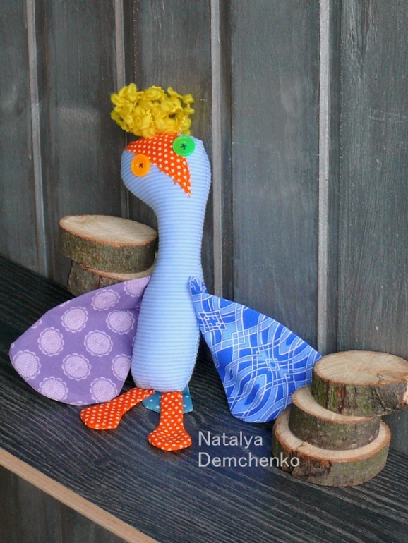 Птица-чайка - немного пошить захотелось ))) Шью я быстрее, чем вяжу, набить тканевую игрушку легче. Но выворачивать детали меня раздражает абсолютно! И процесс вязания игрушек легче тем, что как вяжешь, такая игрушка и получается. С тканевыми не проходит ))) Вроде придумала, нарисовала, сшила, вывернула - и совсем по-другому смотрится 00