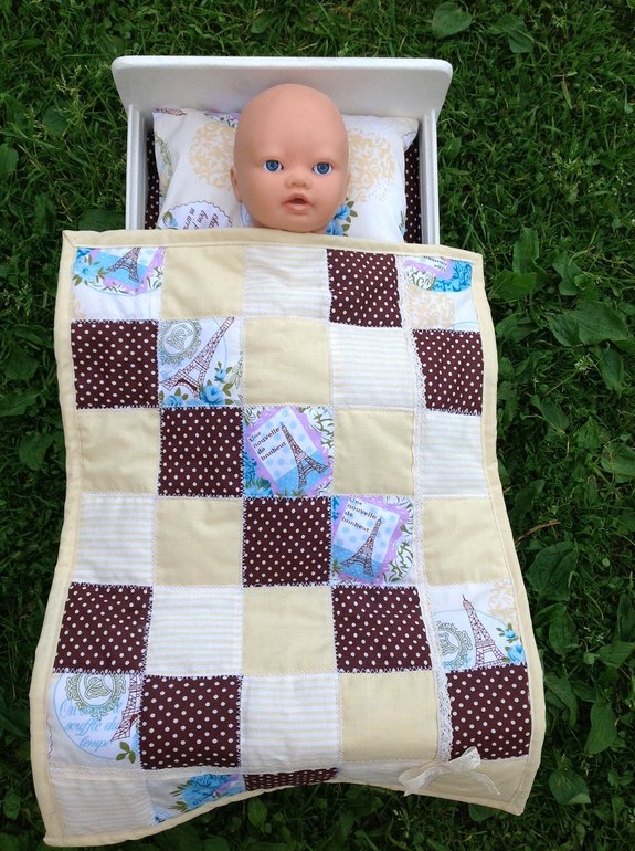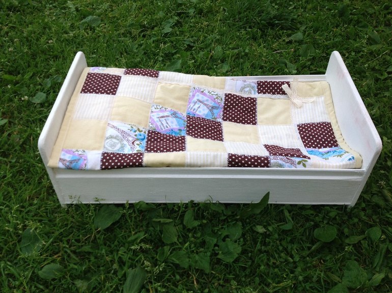 Шитье одежды, выкройки, ремонт одежды, шторы, швейные машины (уже приобретенные)Добрый вечер, девчонки! Сшила постельное белье для куклы и лоскутное одеялко на тонком синтепоне) А мой дядя смастерил для куклы белую кроватку) Дочка довольна))) Под кат более 5 фото!