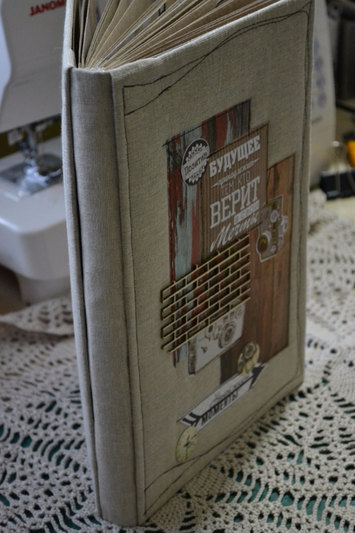 Вчера целый день творила такой альбомчик.новый переплет,листы из плотной крафт бумаги- украшены скраповской бумагой размер 19х30