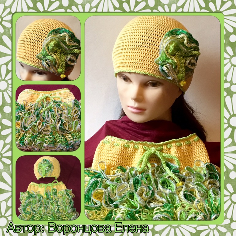 2. Комплект "Лето" (юбочка+шапочка). На 2-3,5 года. Пряжа Хлопок натуральный(Пехорка), SAFINA (Mexico) цвет 030, крючок 1,75-2,25.