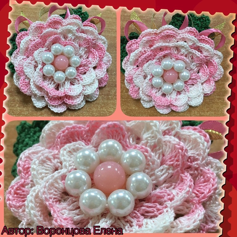 3. Брошь. Размер 7-8см. Пряжа Ирис, крючок 0,9-1,0.