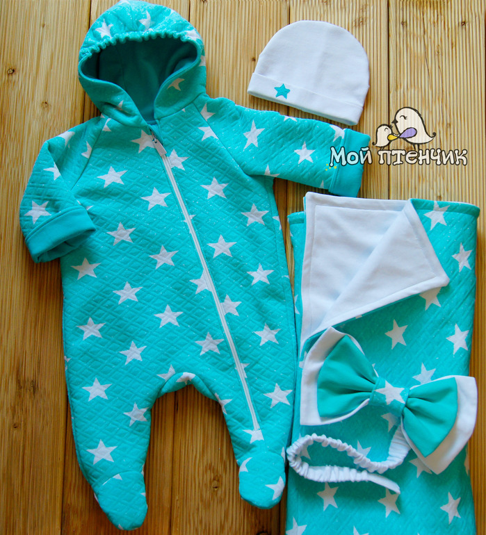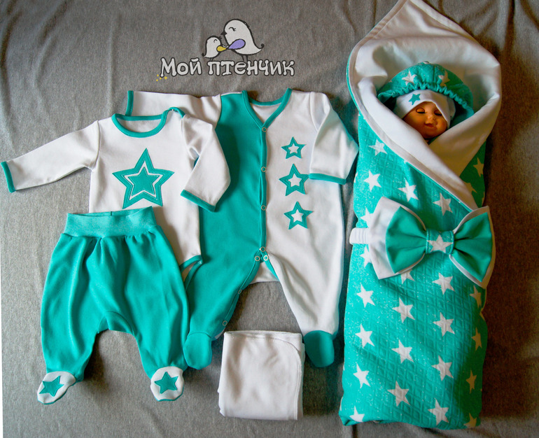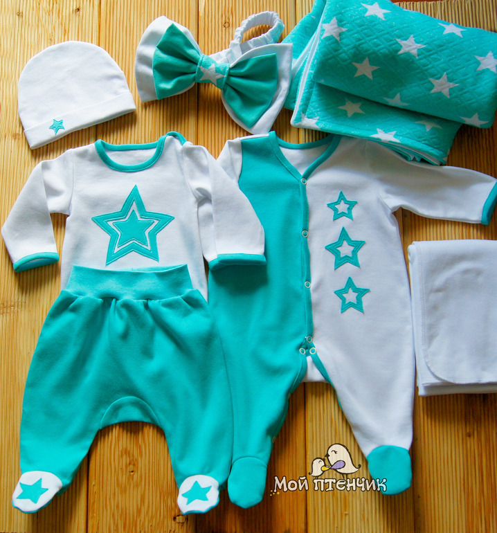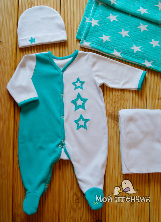 Шитье одежды, выкройки, ремонт одежды, шторы, швейные машины (уже приобретенные)Снова звёздочки, снова комплект на выписку, снова море удовольствия от работы над крошечными вещичками! В отличие от первого комплекта, на этот раз количество вещей увеличено до 8-ми, одеялко без утеплителя, дизайн нательных одёжек полностью изменён:)