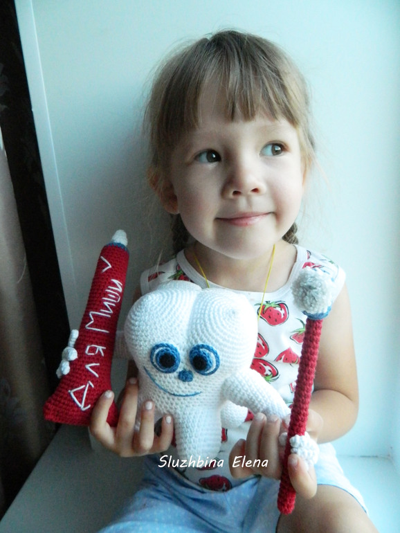 Дочку сфотографировала для того, чтобы размер был понятен) большооой такой зубик =) К сожалению, вечером снимки уже не того качества получаются.