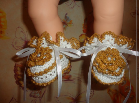 Мне стало нравиться вязать пинетки. Вот это из последнего: