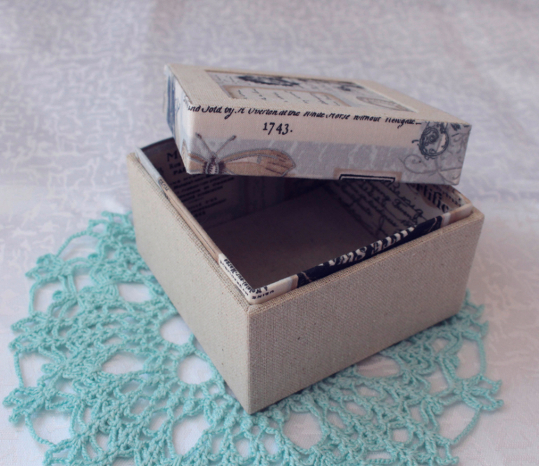 Изделия из бумаги, папье-маше, квиллинг.Попробовала первый раз выполнить шкатулку в технике тканевый картонаж! Шкатулка совсем небольшая, но такая уютная получилась))) Приятно держать в руках) Уже подарила подруге. Хочется сделать теперь что-то с более сложной конструкцией!)