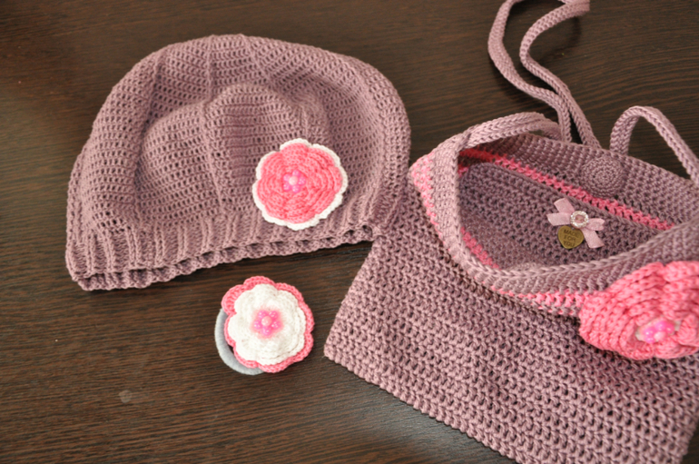 Комплект для дочки, магнитики внутри сумочки обвязаны, на кармашке милашество. И еще прелесная резиночка.