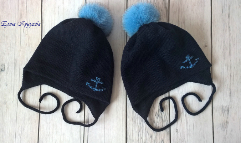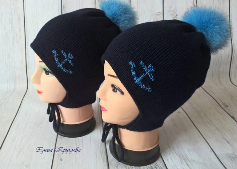 Связались вот такие шапочки для обмена с Татьяной Машинная вязка, вышивка по лицевым петлям, украшены помпонами из натурального меха. Под кат 5 фото