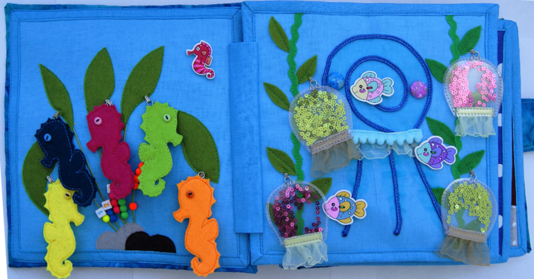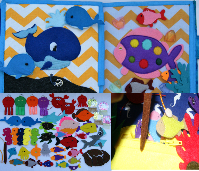 Развивающие игрушкиВсем привет. Пошилась новая книжка "Океан" для мелкого. Под кат 6 фото!