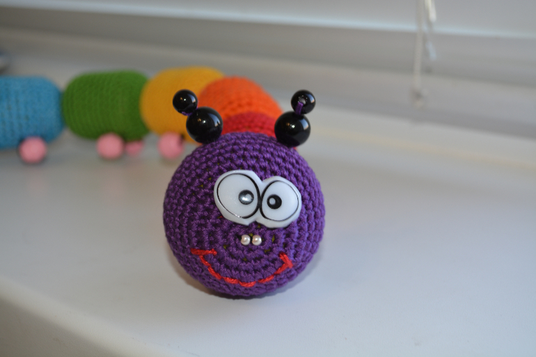 Вязание крючком (РАБОТЫ И СХЕМЫ)Просто гусеничка. Связана сыну в садик. В нутри киндер контейнеры. Пряжа 100% хлопок.
