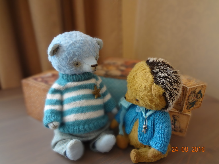 Тедди: мишки и их друзья.Друзья ежик тедди Сеня и лисенок тедди Веня. Сшиты полностью вручную. Ежик ростиком 17см,а лисенок 16см. Плотно набиты опилочаками,утяжеленны стальным гранулятом,приятно тяжеленькие. На обоих зверятах одеты кофточки,все-таки осень приближается))). Вот такие милые и забавные друзья тедди получились))). Более 5 фото под катом.