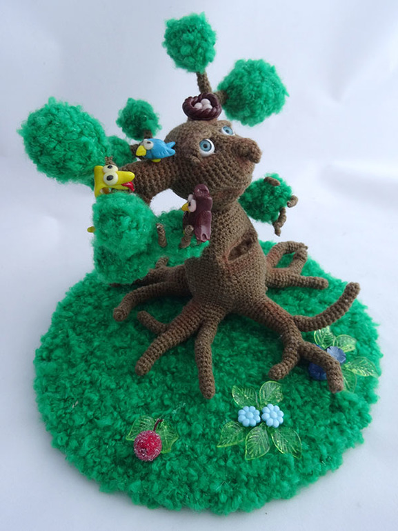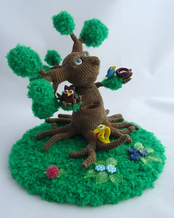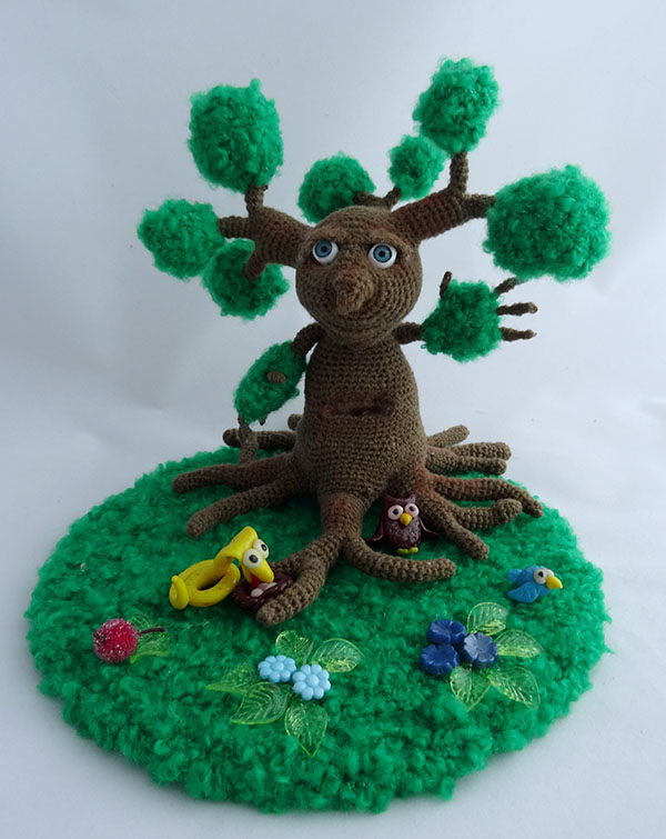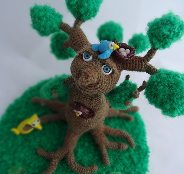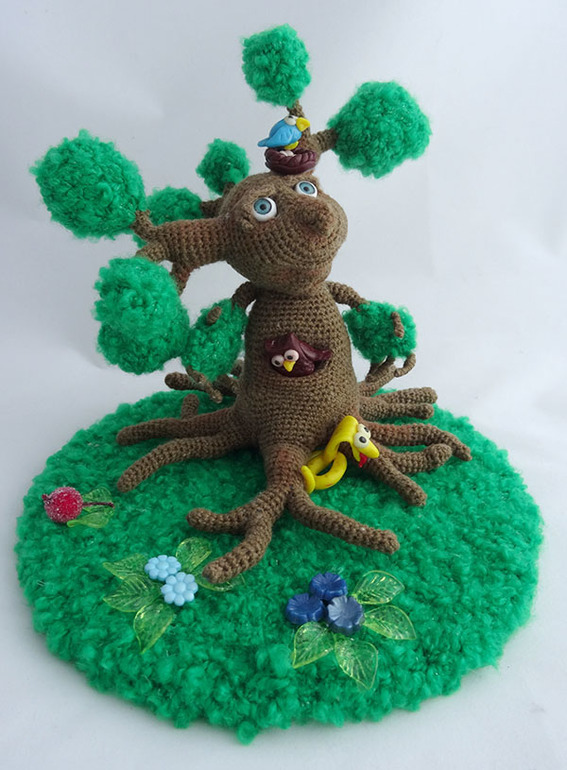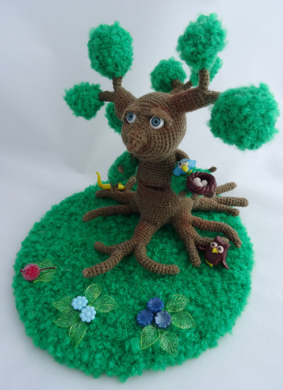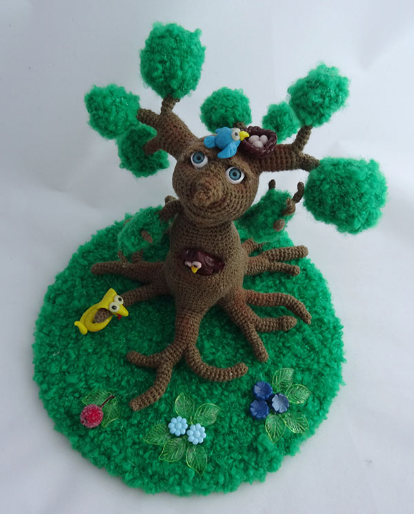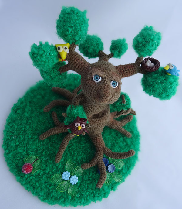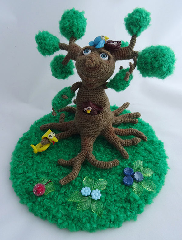 Амигуруми (вязаные игрушки)Дядюшка Древень, самый добрый житель сказочного леса. Работа авторская вязалась в рамках конкурса Душа флоры на соседнем форуме. Связан из раздвоенного Джинса. крючком 1.25, нет пришивных деталей, все ввязывала. Голова на суставе. поворотная, ветви и корни подвижны благодаря проволочному каркасу.