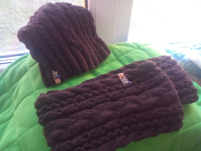 Вязание спицамиВот наконец его довязала))) шапочка и шарф снуд)))