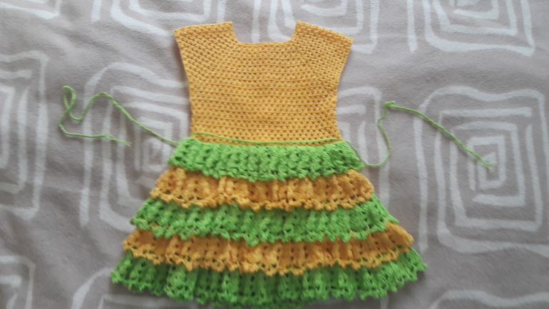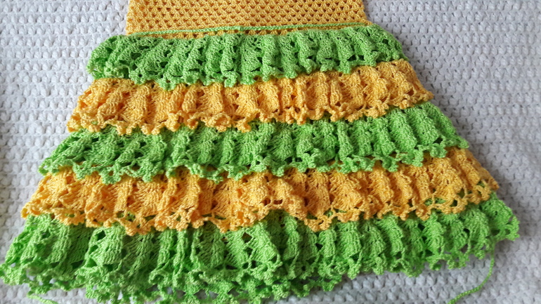 Вязание крючком (РАБОТЫ И СХЕМЫ)Дошли руки выложить еще одно платьице. Вязала из ириса. Крючок 1.5. Желтых ушло 5 мотков, зеленых 4 и еще чуть-чуть.