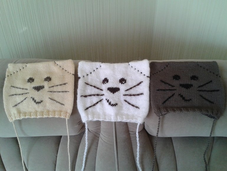 Шапочки без подкладки, вязала из остатков.Две крайние 50% шерсть,50% пан, средняя мохер с акрилом