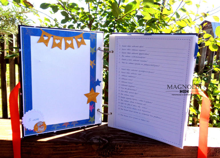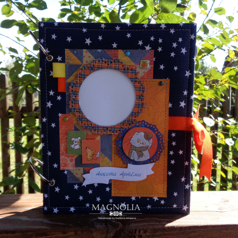 Фотоальбом-анкета для мальчика от 5 до 18 лет, формат 20*22 см, обложка мягкая тканевая (нат.хлопок), крепление на кольцах. Вмещает 14 фото формата 15*20 см