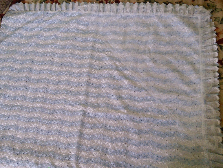 Обмены подарками, материалами для рукоделия (хвастики)Доброго времени суток ,рукодельницы! При очередном разборе нашла пододеяльничек,который шила сыну на выписку.Уж очень мне хотелось ,чтоб по старинке,в красивом одеяле и с бантом!)))) Все пошло немножко не так,как я планировала и так и осталась наша красота не использованная. Может быть кому то из будущих мам мальчиков понравится.) Буду рада обменяться.) Пододеяльник полностью из шитья+ кружевной уголок.Размер 120*120 см.