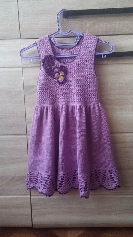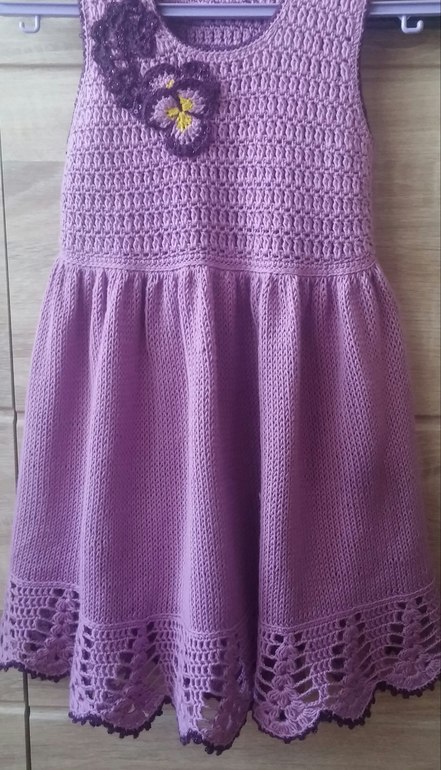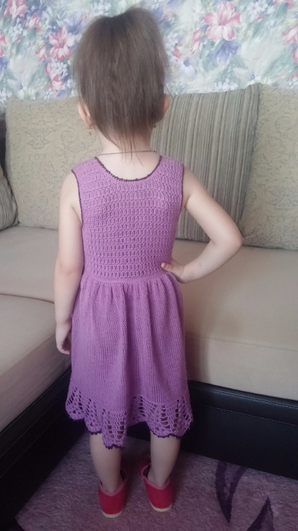 Вязала кокетку перед и зад,сшивала,а потом по низу кокетки набирала петли и вязала юбку,потом обвязка низа