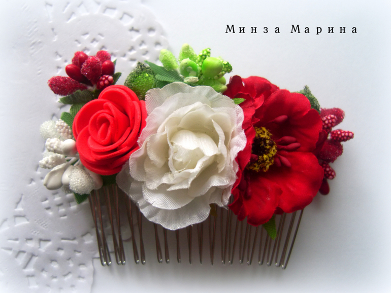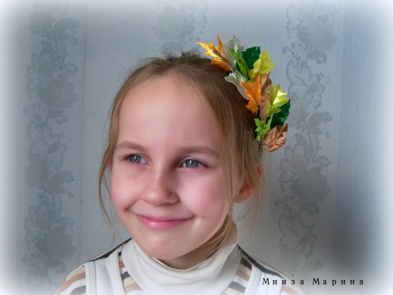 Цветы из ткани и форма. Канзаши. Украшения для волос.Много фото - ленты в косу, резинки на пучок, снежинки на пучок, шпильки, осенний ободок с листьев