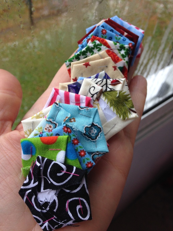 3. Режем.. можно квадратики, можно кракозяблинки, как получится.. я у бОльшеньких квадратиков немного уголки срезаю, мне так удобней. Можно с лицевой стороны приколоть шаблон булавочками
