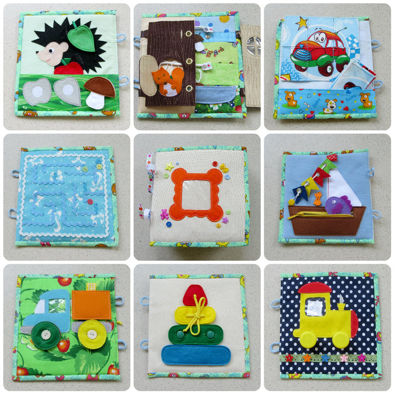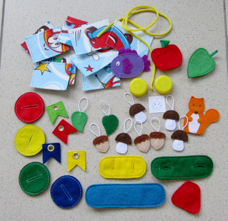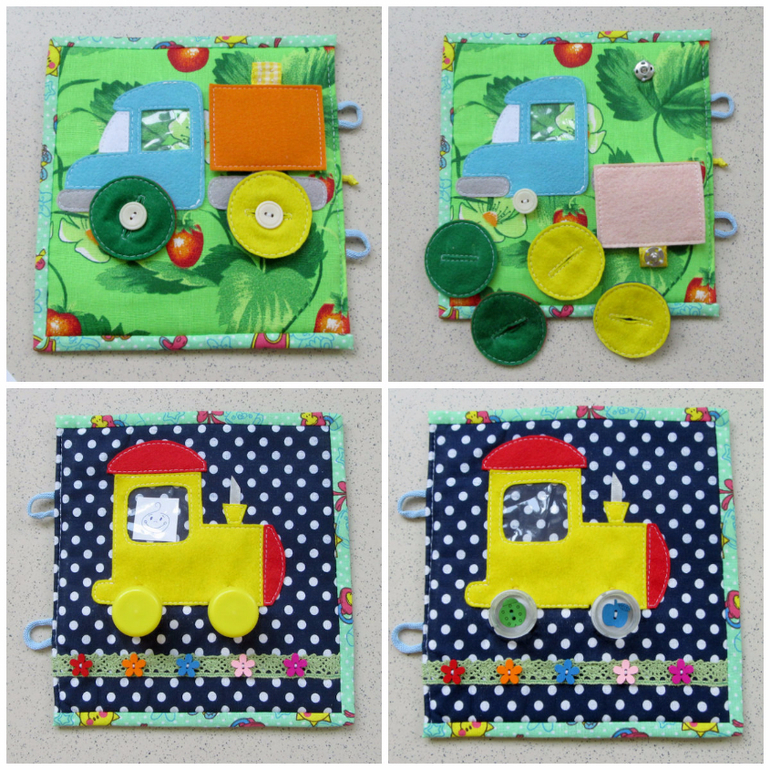 Страничка с пуговичным лабиринтом для пальчиков и страничка с корабликом. Рыбка надевается на пальчик.