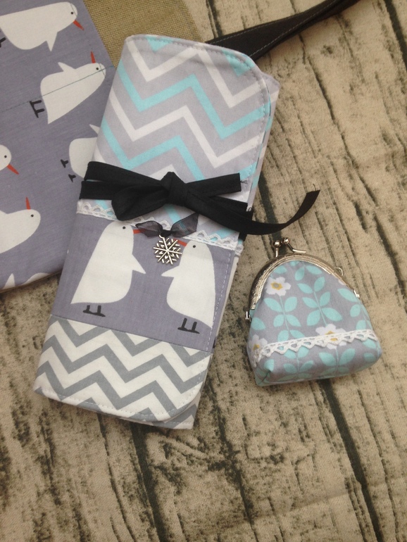 Обмены подарками, материалами для рукоделия (хвастики)Это к той мальчуковой сумке. Я расстроилась и дошила к сумочке пенал и кошелёчек.