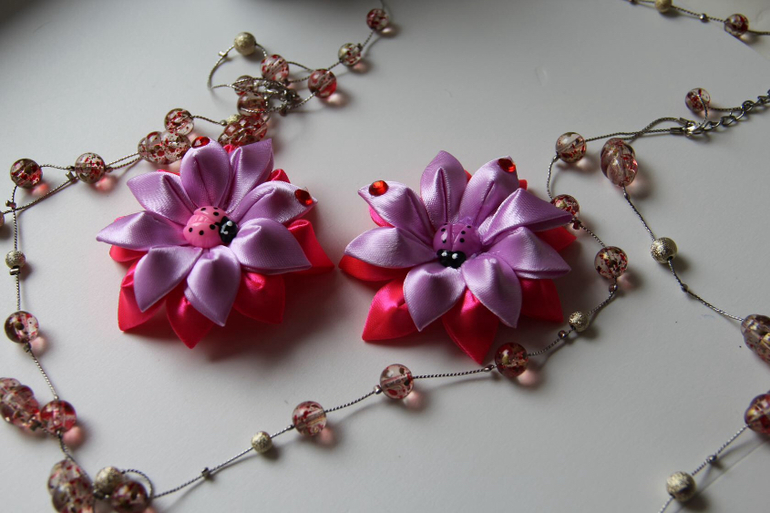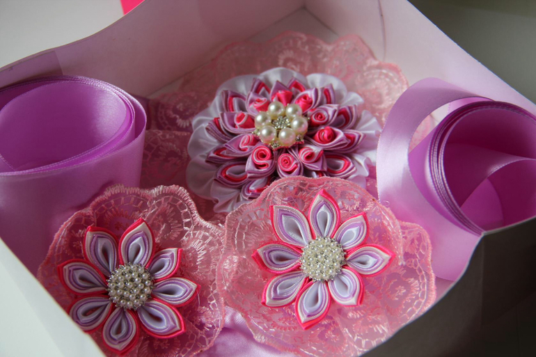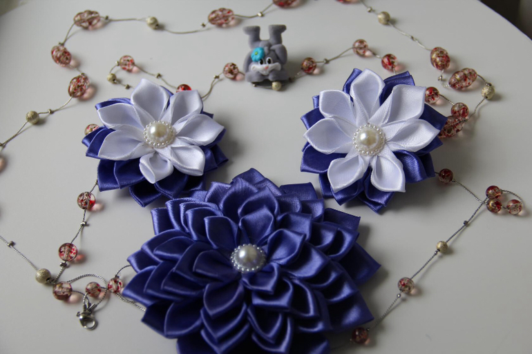 Цветы из ткани и форма. Канзаши. Украшения для волос.Бант дела впервые для брата. Наборчик из броши и резиночек делала в подарок, а остальное для доченьки