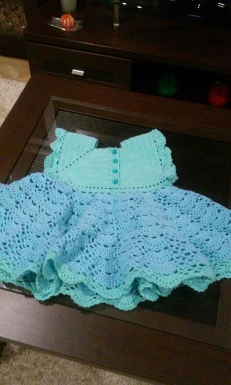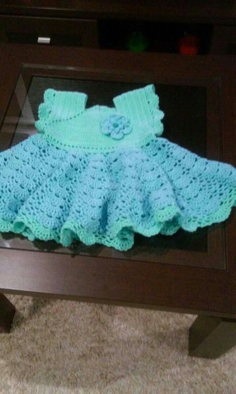 Чем вдохновила маму связать к шапочке очаровательное платьеце)
