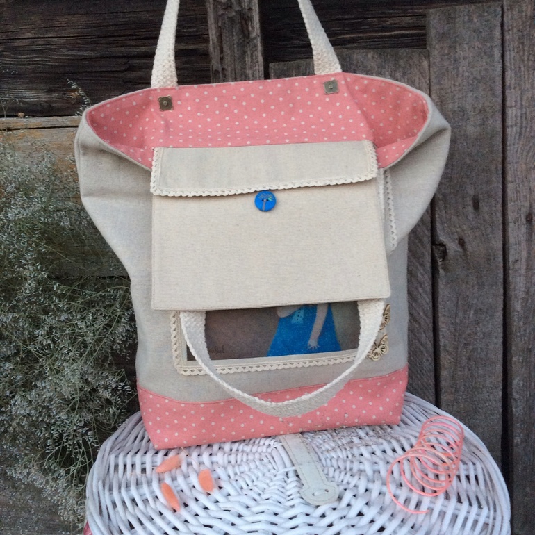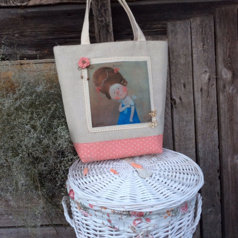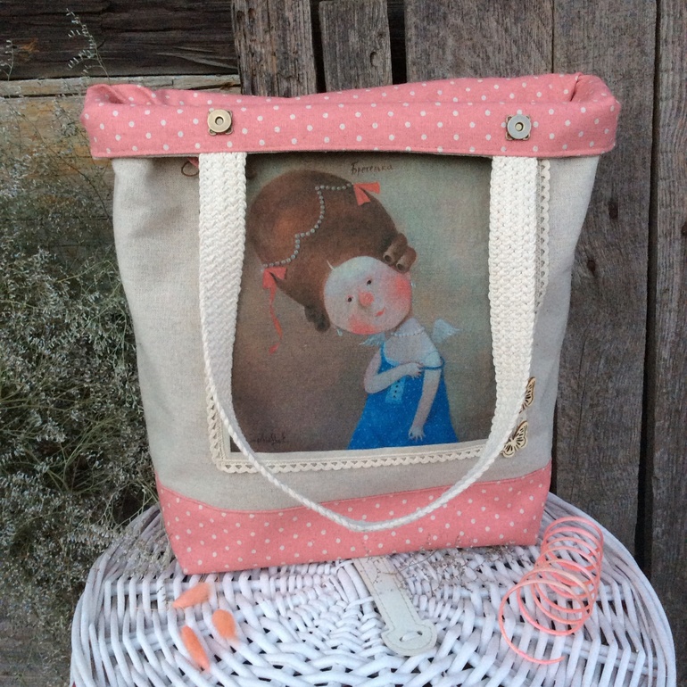 Шитье одежды, выкройки, ремонт одежды, шторы, швейные машины (уже приобретенные)Сумкака тоут "Бретелька" по мотивам картины Е. Гапчинской. Материалы: лён + хлопок, суровый лён, небеленая бязь, магнитные кнопки, деревянная фурнитура.