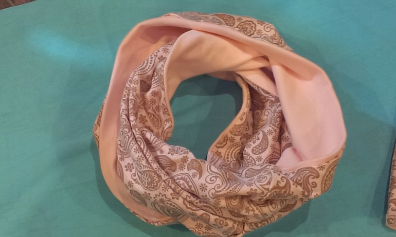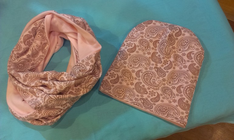 Шитье одежды, выкройки, ремонт одежды, шторы, швейные машины (уже приобретенные)Сшилась вот такая парочка. Шапка-носок и снуд двойные, из интерлока, очень приятный,. нежный цвет, несколько фото,
