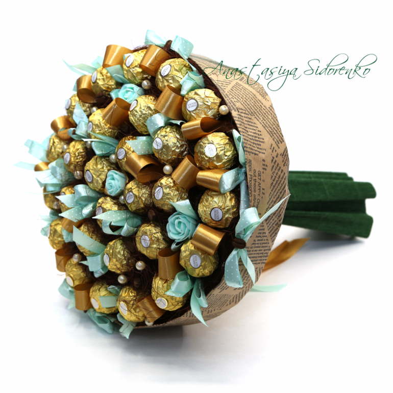 Букеты из конфет. Свитдизайн.Букет из конфет "Мятный восторг"