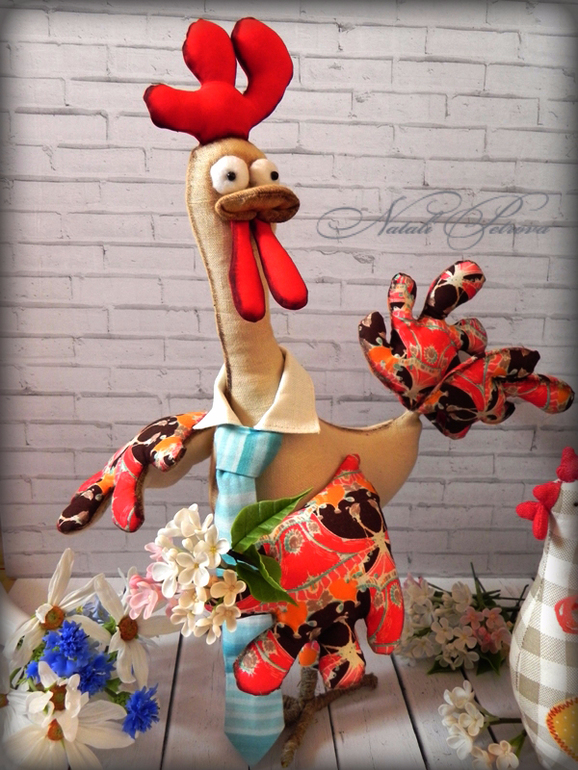 Редко я шью игрушки, но мимо этого петуха просто не смогла пройти