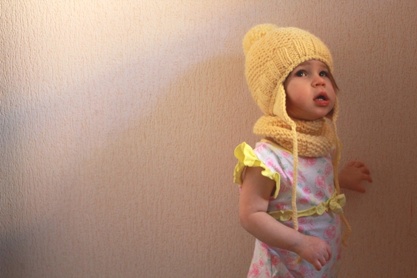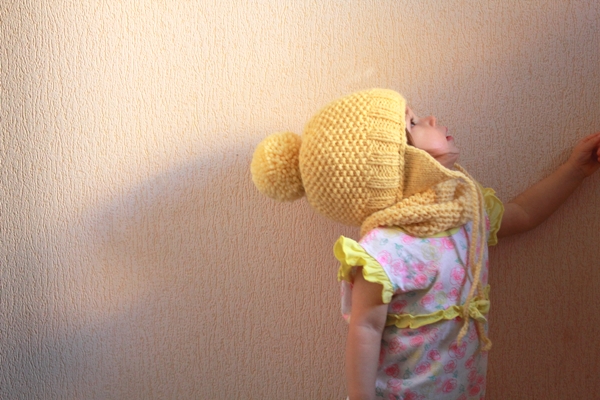 Пряжа "Арина" (Семеновская пряжа),123м/100г, 50%шерсть/50%акрил. Спицы №№ 6(резинка шапочки), 6,5 (основная часть), №5 (ушки). На комплект ушло меньше 2х мотков