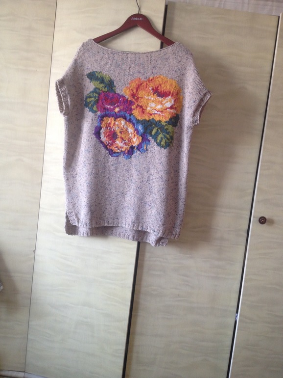 Года два тому назад, я безумно захотела кофту с розами. Как говорится, стукнуло в голову))) стала искать в интернете и увидела Санторини от Rowan. Честно скажу, я в нее прям влюбилась! И все! Начала покупать журнал, пряжу, спицы... на то время могла себе все это позволить. Как хорошо, когда можешь себе позволить такую пряжу) сейчас иная ситуация. И началось... ребенку было пол года, и еще постоянные колики. Некогда было особо вязать. Но все равно находила немного времени на свою мечту. Довязав рисунок, поняла, что очень уж слабо вязала и у меня не моя мечта а г... это правда было что- то ужасное! И решилась распустить все и снова начать. Второй раз уже все намного лучше вышло! Конечно время, время... зато имею , то что и хотела. Еще хочется добавить, -"если хочешь сделать хорошо, то сделай это сам"!Свекровь мне предлага ее связать. как хорошо, что я сама ее связала! Я сделала, то что и хотела! Желаю всем, чтобы Ваши мечты сбывались!!!