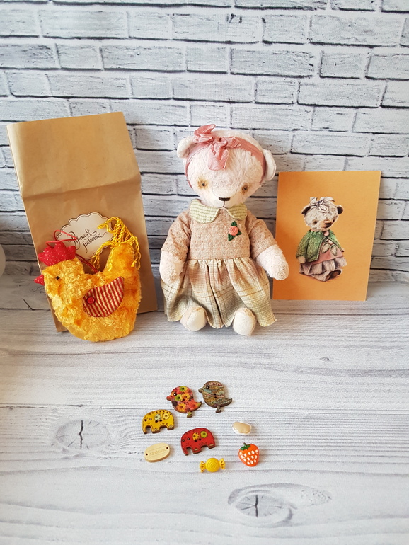 Обмены подарками, материалами для рукоделия (хвастики)У нас с Женей уже традиция)обмениваться рукоделочками!у меня уже в коллекции 3 мишутки )))в этот раз девочка..чудесная)в платьице!)