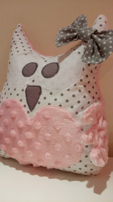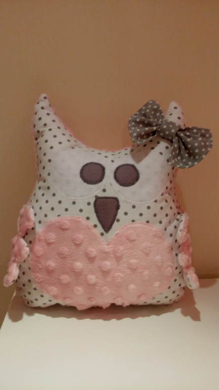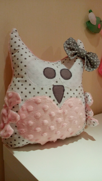 Доброе утро! Вот такую сову сшила в подарок. С обратной стороны плюш минки, с передней стороны хлопок польский. Под кат ещё 2 фото.