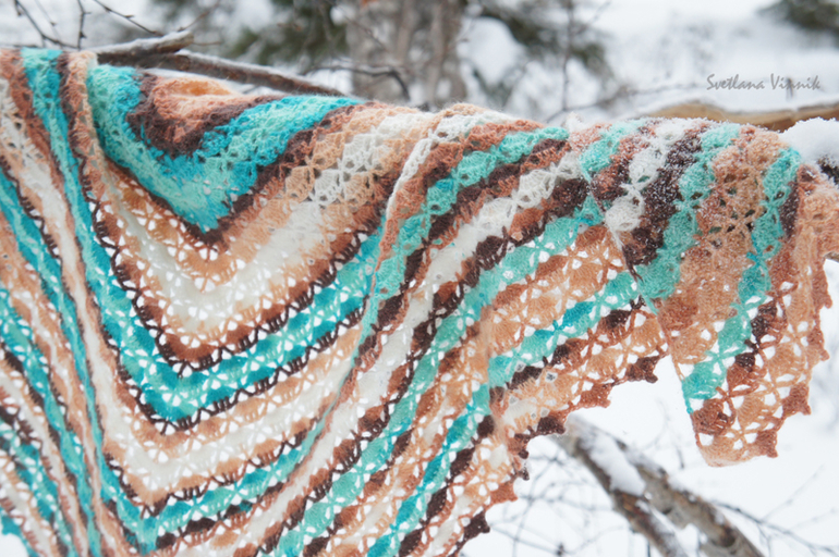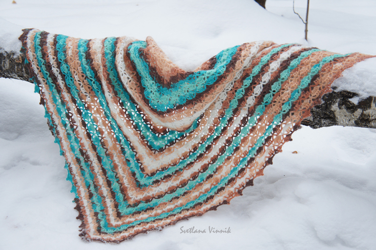 Вязание крючком (РАБОТЫ И СХЕМЫ)Всем добрый вечер. Коротала время в отпуске с крючком. И вот готова очередная шаль. Давно мечтала попробовать в таком сочетании. Связана из двух моточков Alize Angora Gold, 80% акрил, 10% шерсть,10 % мохер. Крючок 3,5