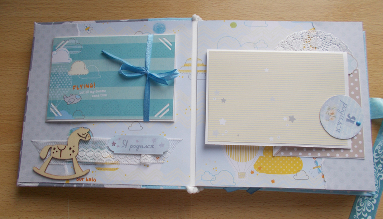 Предназначен для размещения фото первого года жизни и включает тематические страницы: я родился, первое купание, мои игрушки и другие.