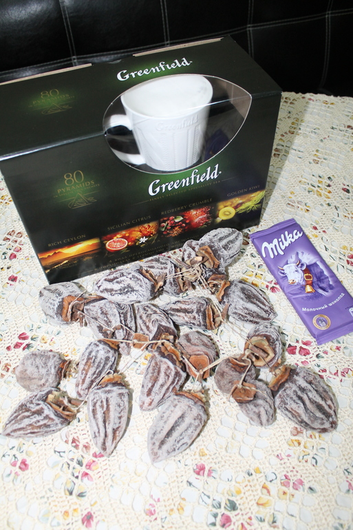 Если кто не понял, то снизу сушёная хурма!!!!!!!!!! Любовь к данному фрукту у меня с детства, а вот к такому сушёному его варианту со студенческих времён...Просто в Университете у меня подружка была с Ростова-на-Дону, вот ей родители и присылали оттуда такие вкусняшки!!! Поэтому это для меня не просто лакомство, а ещё и элемент ностальгии по тем временам!!!!!!!!!!!!!!! Уже почти всё умяла...Если я что-то люблю, то люблю...