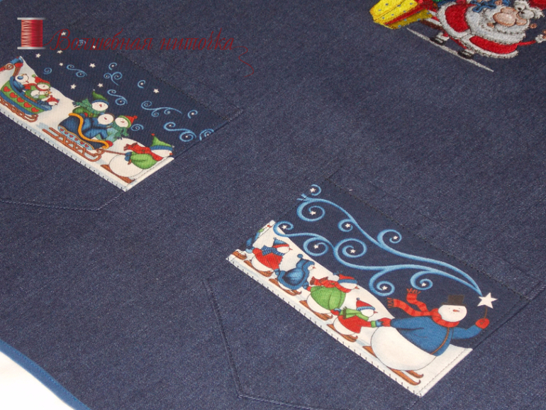 Плотная, но мягкая джинса, на карманах нашиты фрагменты из готовой панели американского хлопка. Основной рисунок машинная вышивка. Зайчик - это аппликация из мягкого велюра.