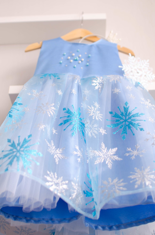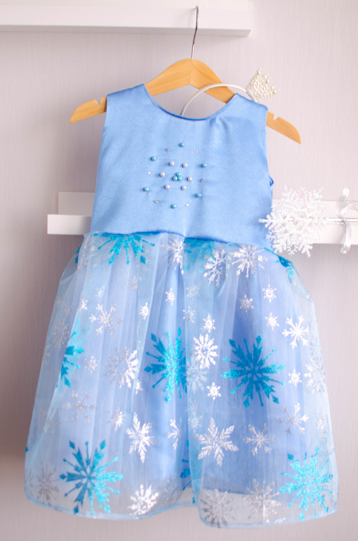 Ткань покупала на Али в день распродажи прям за копейки))) Переживала что вовремя не придет, но все пришло где-то за неделю до утренника, так что я успела сшить. Верх атлас, вышивка из головы придуманна. Юбка три слоя: атлас, фатин и верхняя нарядная ткань со снежинками.