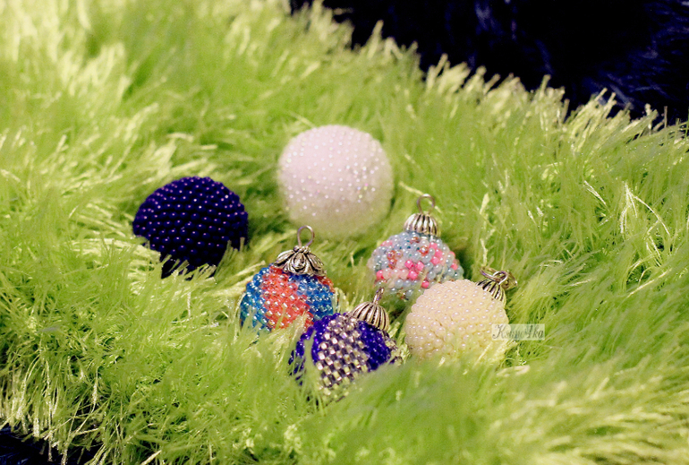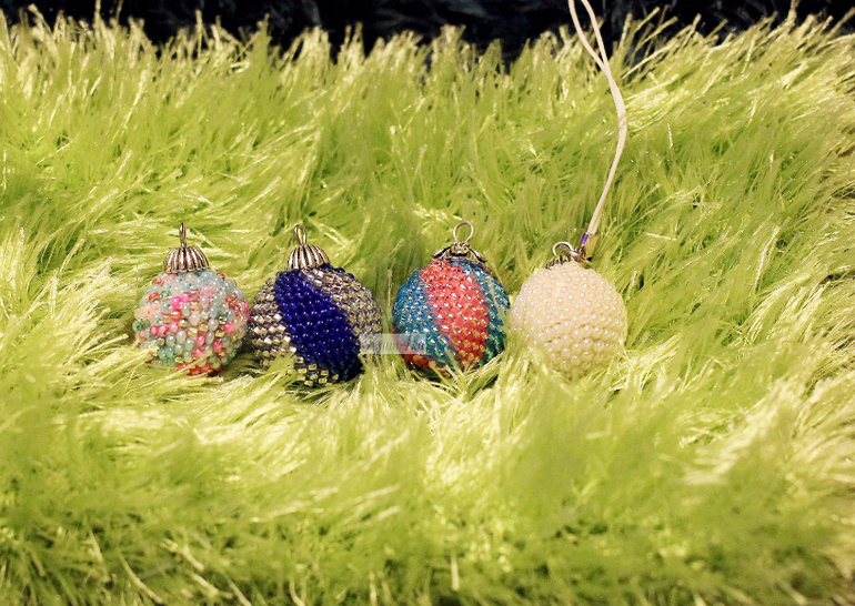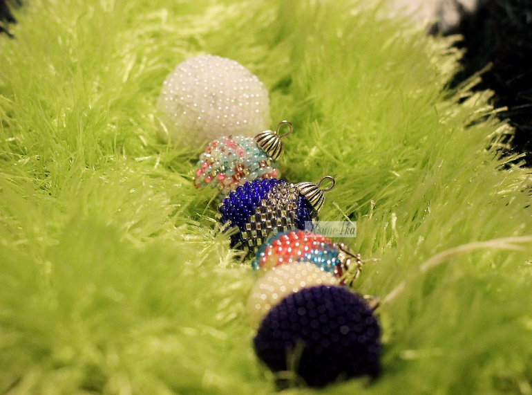 В перерывах между большими шариками я очень быстро связала несколько маленьких - прямо отдыхалочки) Некоторые стали ёлочными украшениями, некоторые - брелоками. Кстати, для этих целей отлично подходят остатки бисера - его нужно совсем немного.
